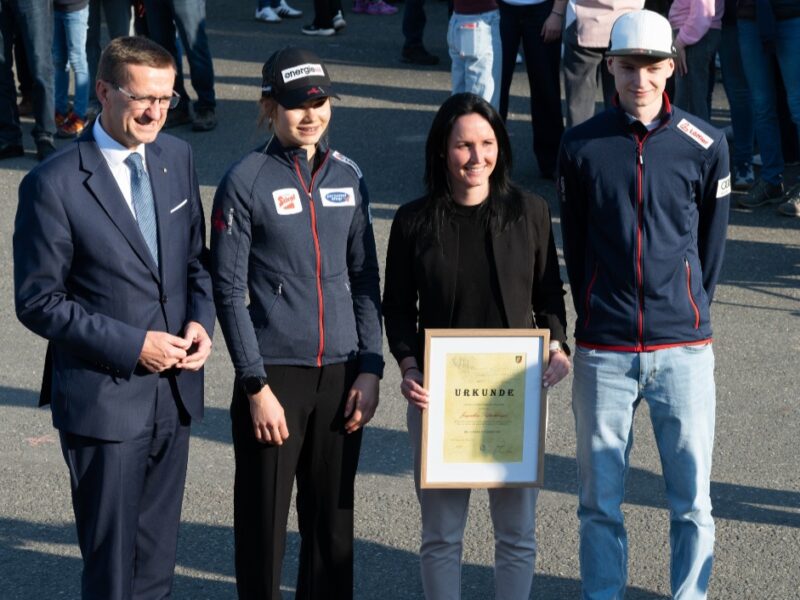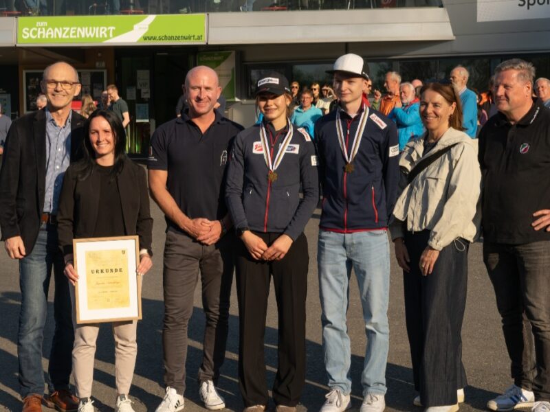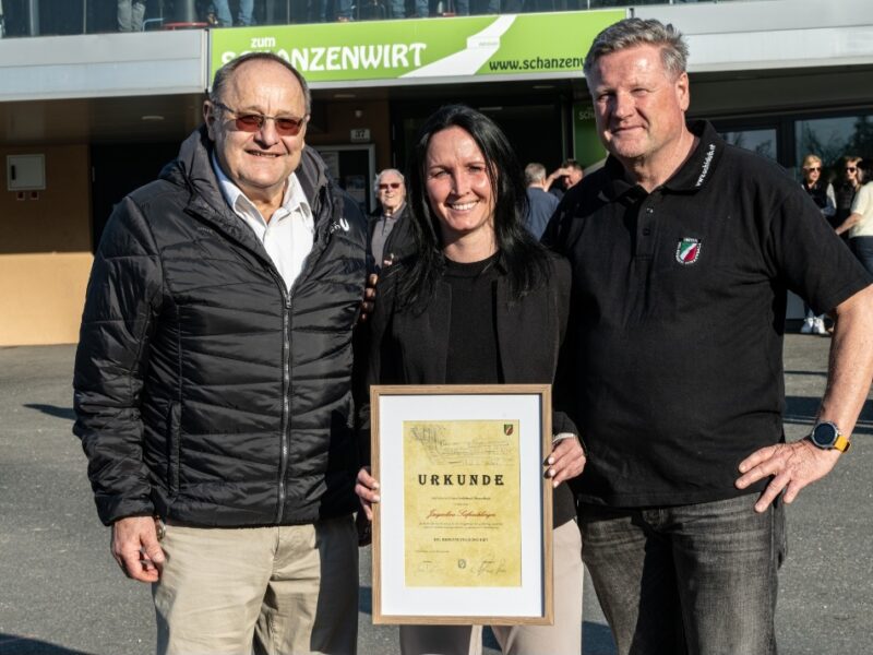 Ebenfalls hochleben ließ der UVB Hinzebach Oberösterreichs erfolgreichste Skispringerin Jacqueline Seifriedsberger, die im September 2025 ihren Rücktritt bekannt hab. Die Athletin vom SC Waldzell hat während ihrer Laufbahn unzählige Male in Hinzenbach trainiert und mit einem zweiten und einem dritten Platz zählt Hinzenbach auch zu ihren erfolgreichsten Weltcupstationen. UVB Hinzenbach-Präsident Bernhard Zauner überreichte Seifriedsberger in Würdigung ihre Leistungen die Ehrenmitgliedschafts-Urkunde des UVB Hinzenbach.