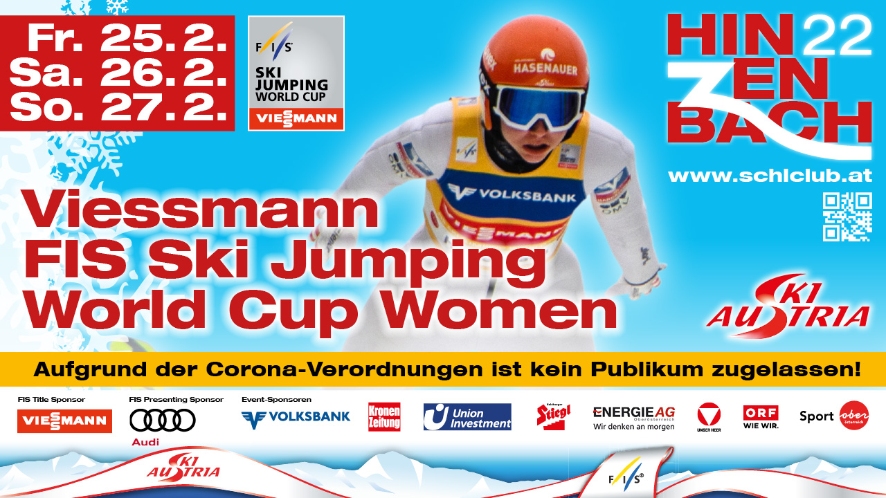 Das FIS Damen Weltcup Skispringen wird OHNE Zuschauer und VIP Gäste abgehalten! Wir bitten um Verständnis und freuen uns auf ein Wiedersehen bei den nächsten Veranstaltungen. Viessmann Skisprung Weltcup der Damen in Hinzenbachvon 25. bis 27. Februar 2022 Siegerin der Alpenkrone wird gekürtBereits zum zweiten Mail findet heuer der Viessmann FIS Ski Jumping World Cup Women … [Weiterlesen...]