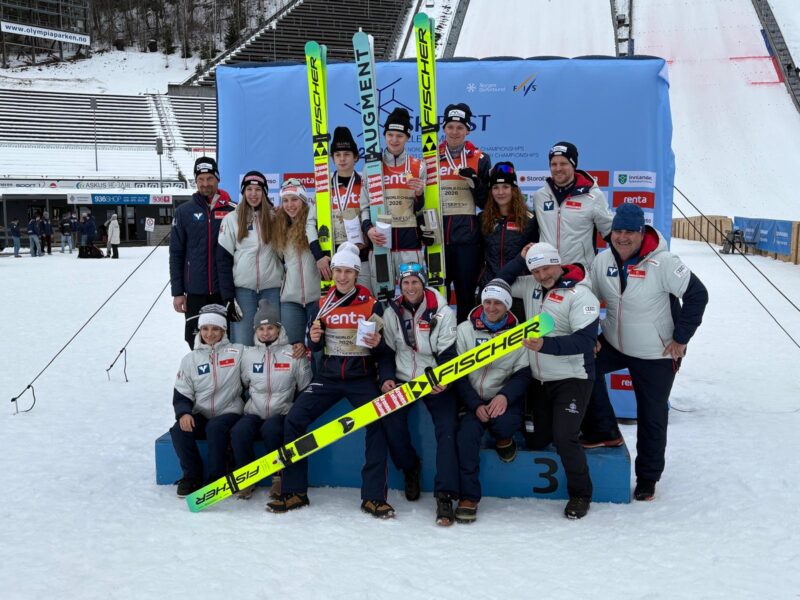 Die österreichischen Skispringer haben bei den Junioren-Weltmeisterschaften in Lillehammer auch ohne Einzel-Sieger Stephan Embacher Gold im Team-Bewerb erobert. Thomas Gfrerer, Julian Auinger (UVB Hinzenbach), Nikolaus Humml und Lukas Haagen setzten sich am Samstag 13,5 Punkte vor Deutschland und 58,7 vor Norwegen durch. Es war bereits die sechste Team-Goldene bei Nordischen Weltmeisterschaften in Folge für Österreichs Junioren-Skispringer.